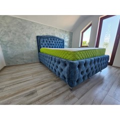 Pat tapitat cu dimensiunea de 1.4m/ 2m, cu somieră metalică rabatabila și spatiu de depozitare. Somiera rabatabila este fixata pe lateralele patului, dobândind astfel o rezistenta crescuta în timp, de asemenea somiera rabatabila ofera numeroase avantaje: se poate folosi spațiul pentru depozitare, ajuta salteaua sa respire prevenind formarea mucegaiului și a mirosurilor neplăcute, ofera o mai buna susținere a saltelei.